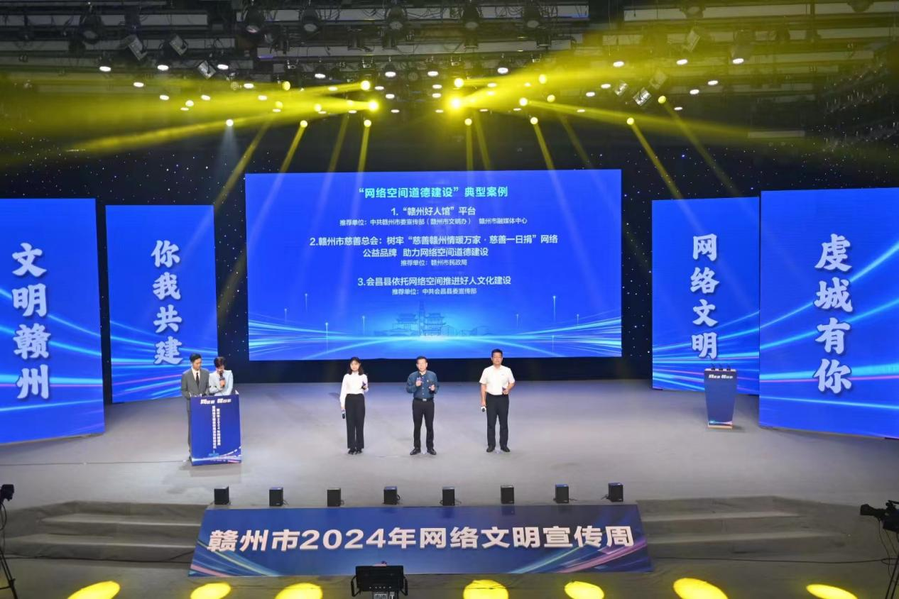 4月25日上午,由中共赣州市委网信办主办,赣州市融媒体中心、赣州文化传媒集团承办的赣州市2024年网络盛典暨网络文明宣传周活动正式启动,市委常委、宣传部部长钟小武出席启动仪式并讲话。《赣州市慈善总会:树牢“慈善赣州情暖万家·慈善一日捐”网络公益品牌,助力网络空间道德建设》成功获评为全市网络空间道德建设典型案例(全市共3个),赣州市慈善总会副会长宋崇林上台领奖并作案例介绍。