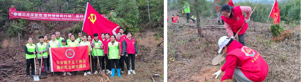 乐安县慈善总会联合乐安县新时代文明实践中心、县城管委芙蓉社区、乐安县援手义工协会、乐安县鑫林油茶良种有限公司来到乐安县鳌溪镇何元村开展“春暖三月 植树增绿在行动”新时代文明实践活动。在技术员的指导下,种下了一千棵油茶树苗,树苗在和煦的春风中焕发出勃勃生机。