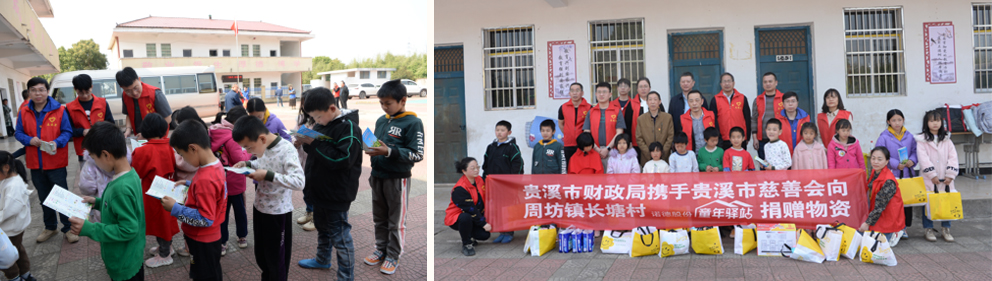 贵溪市慈善会联合市财政局党员志愿者走进周坊镇古港敬老院和长塘村童年驿站,开展志愿服务活动。志愿者给孩子们带来了零食和文具等物资,向他们宣讲未成年保护知识,鼓励他们好好学习。