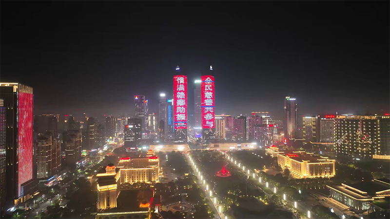 夜幕低垂,华灯初上,南昌绿地双子塔在璀璨的灯光中更显巍峨壮丽。巨大的LED屏幕上,一句温暖人心的宣传标语缓缓亮起,照亮了赣江两岸:“情满赣鄱助振兴,全民慈善共参与。”这句标语在南昌绿地双子塔上循环播放,与城市的夜景交相辉映。在这座城市的最高点,慈善的火种被点燃,爱的力量正随着夜风,飘向每一个角落。