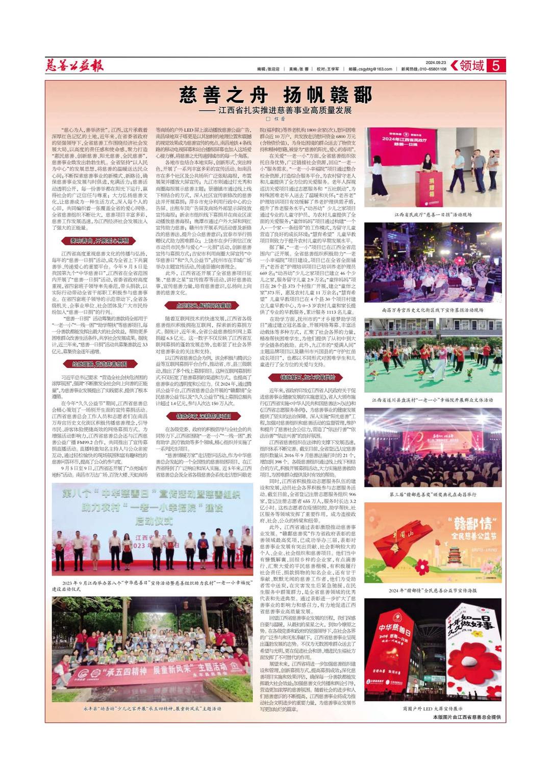 展望未来,江西省将进一步加强慈善组织建设和管理,创新募捐方式,提高募捐成效;深化慈善项目实施和效果评估,确保每一分善款都能发挥最大社会效益;加强慈善文化传播和舆论引导,营造更加浓厚的慈善氛围。我们期待,随着社会的进步和人们慈善意识的不断提高,慈善事业将成为推动社会文明进步的重要力量,让我们携手并进,共同书写慈善事业更加灿烂的篇章!(供稿:程蕾)