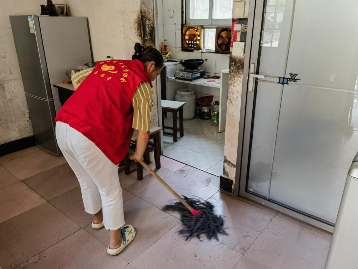 银龄志愿者为困难残疾人每月定期打扫卫生