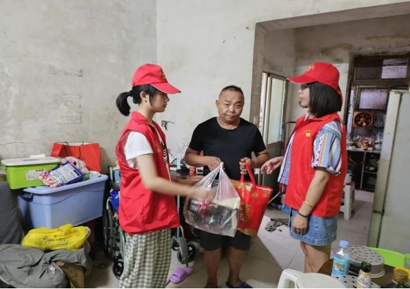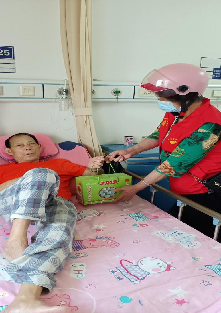 银龄志愿者带着慰问品探望生病的特困老人