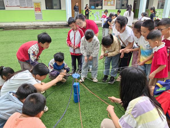 活动在孩子们稚嫩的歌声中拉开帷幕,孩子们手持气球齐唱节日歌曲,现场洋溢着欢乐与活力。游园会设置了套圈、丢沙包、投壶等丰富多彩的趣味游戏,让孩子们在协作与竞争中感受快乐。随后,守护员带领孩子们走进高龄老人家中,陪伴老人聊天,传递温暖与关爱。“环保国风秀”环节中,孩子们身着废旧材料制作的创意服装和传统服饰,自信展示风采。最后,守护员还通过播放短片和开展互动游戏向孩子们普及安全知识,增强儿童自我保护意识。