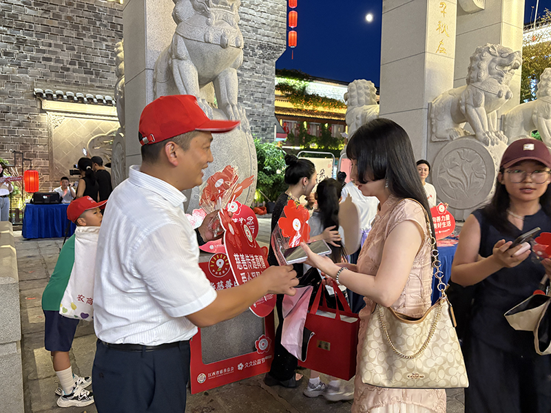 志愿者在南昌万寿宫历史文化街区进行慈善宣传