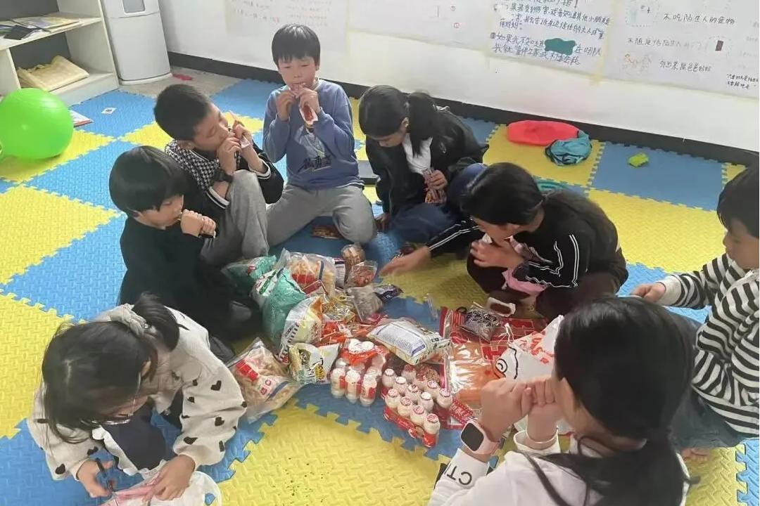 活动在孩子们的欢呼声中拉开帷幕。童伴妈妈邀请孩子们围坐成圆圈,将饼干、酸奶、薯片等零食洒在圈内,每一份零食都包裹着浓浓的爱意。随后,孩子们带来精心准备的表演:稚嫩的歌声、童真的舞蹈、声情并茂的诗朗诵、幽默风趣的笑话,每个节目都是对童伴妈妈最真挚的告白。最后,孩子们分享在童伴之家的温暖记忆:童伴妈妈讲解学习疑难点、一起玩揪尾巴游戏、参与各类主题活动。孩子们说:“每次来童伴之家都很开心,平时可以玩很多玩具,活动时还可以体验很多不同的文化,感谢童伴妈妈为我们带来的快乐!”