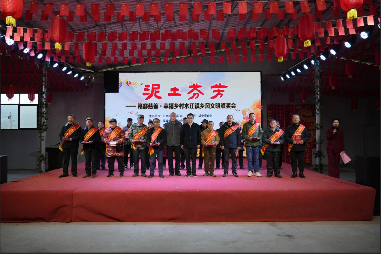 2026年2月6日,“泥土芬芳——赣鄱慈善·幸福乡村”乡风文明颁奖会在宜春市袁州区水江镇举行。省慈善总会会长汤建人,省政协副秘书长、民进省委会专职副主委崔传鹏,宜春市政协副主席欧阳昕,北京谛恒投资集团有限公司代表、宜春中学教育发展基金会理事长王林以及宜春市、袁州区相关领导出席活动。