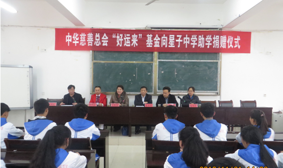 11月21日至23日,中华慈善总会“好运来”基金执行主任郭伟生一行先后来到星子中学和井冈山中学,为两校100名家庭困难、品学兼优的在校生分别给予2000元资助,共捐赠助学金20万元。中华慈善总会工会主席芦红焰、财务部主任高守华、彩运网副会长朱和平、秘书处副处长熊志亮,庐山市副市长危玉球、井冈山市民政局局长丰剑鸣等领导分别出席两地捐赠仪式。